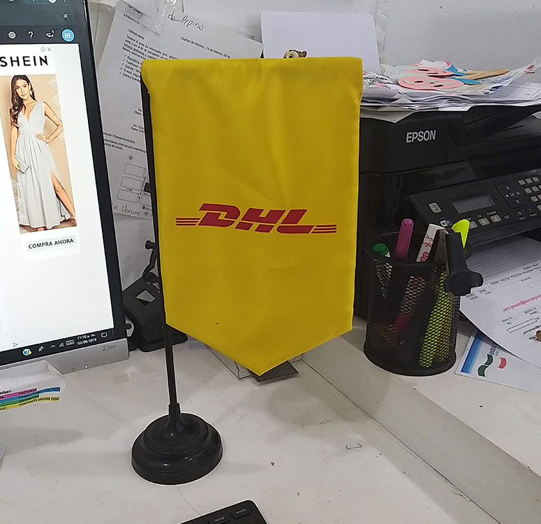 Productos, Banderas de EscritorioEste tipo de banderas son pequeñas, las cuales pueden ser utilizadas como ornamento para hacer lucir su oficina o escritorio mostrando la bandera nacional o con su imagen corporativa. Las medidas de esta bandera son 15 X 25 cm en tela de razo. Se le puede agregar al pedido el asta de la bandera en laton y nicho con los vidrios normales o vicelados. Podemos fabricar banderas economicas en grandes cantidades para grandes eventos, campañas politicas, eventos corporativos, etc. y asi mismo podemos fabricar una sola bandera con telas de seda y bordados con hilos o canutillo de oro para instituciones gubernamentales u oficinas corporativas, con las tecnicas más altas en cuanto a fabricación, y asi mismo, podemos hacer trabajos intermedios con calidad y belleza exepcional.